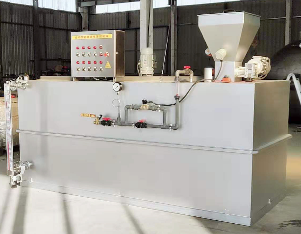 PAM全自動(dòng)加藥裝置主要由支架或操作平臺(tái),溶液箱、儲(chǔ)藥箱,攪拌器、計(jì)量泵、液位計(jì)、電控柜、管路、閥門、脈動(dòng)阻尼器、壓力表、Y型過(guò)濾器,安全閥,背壓閥等組成。加藥裝置根據(jù)所需藥劑濃度,在攪拌箱內(nèi)配置,經(jīng)攪拌器攪拌均勻后投入儲(chǔ)液箱、用計(jì)量泵向投藥點(diǎn)或指定系統(tǒng)中輸送所配制的溶液。加藥裝置還可根據(jù)用戶不同工藝流程的要求,進(jìn)行有針對(duì)性的設(shè)計(jì)、配置必要的部件,實(shí)現(xiàn)自動(dòng)遠(yuǎn)程控制等功能。